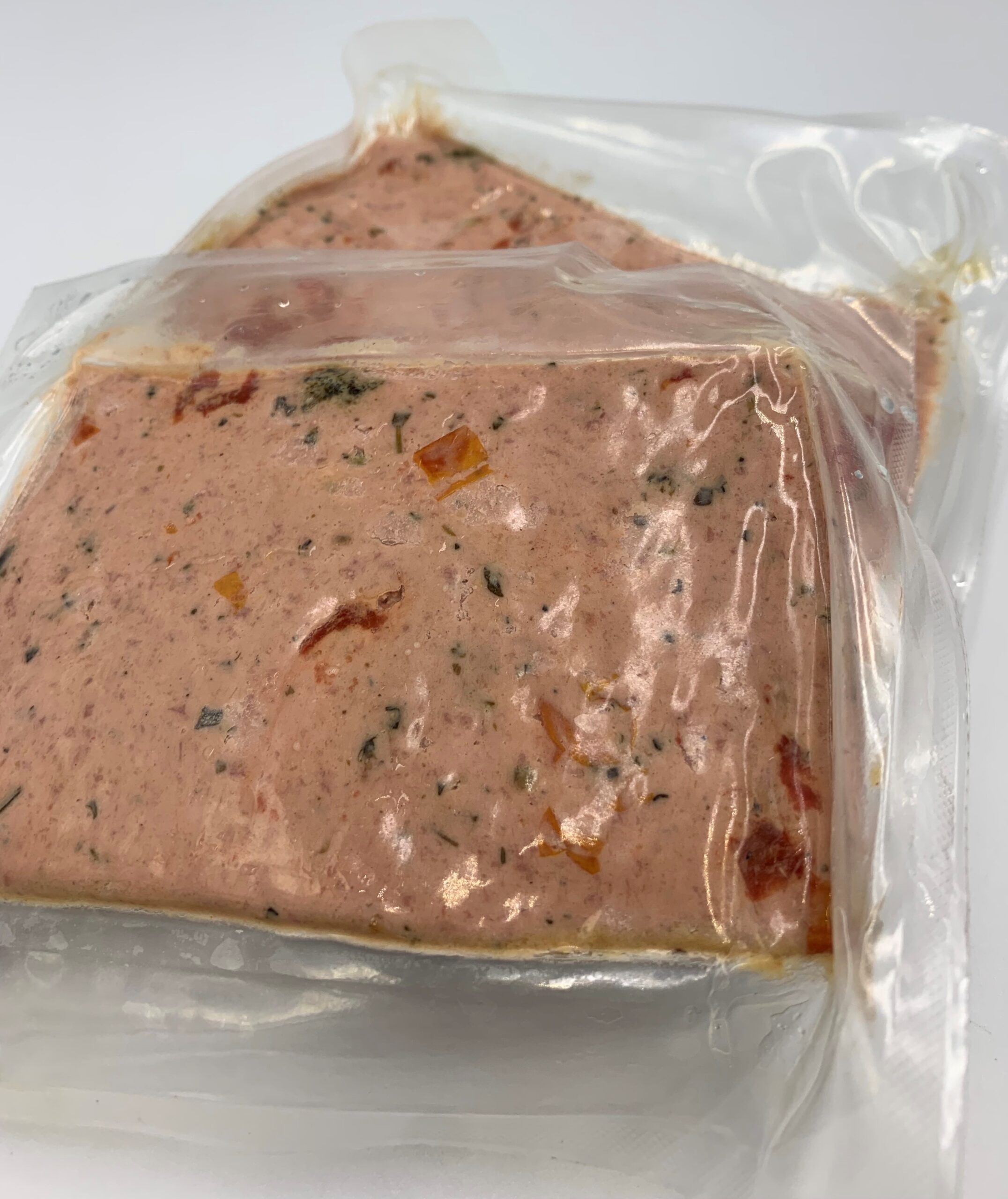 Ingredienten: Varkenslever, varkensspek, bouillon, provencaalse kruiden, zontomaat, uienpoeder, suiker, nitrietpekelzout, e120, e471, koriander, cardamom, tomatenpuree, rijstebloem, majoraan, roompoeder (melk), peper, gember, foelie, kardemom, aroma, glucosesiroop, lactose (melk), gehydrolyseerd plantaardig eiwit, e301 en geroosterde uien aroma