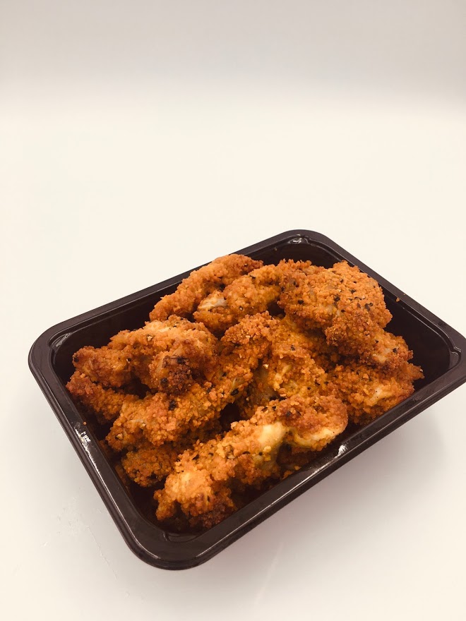 | Ingrediënten | paneermix:, bloem, (TARWE, bevat, GLUTEN), kruiden, en, specerijen, (zwarte, peper, paprikapoeder, witte, peper, koriander, foelie, gemberpoeder, kurkuma, komijn, SELDERIJ, peterselie, dragon), aroma, (bevat, SOJA, bevat, kip, bevat, mais), zout, dextrose, gehydrolyseerd, eiwit, (SOJA), gist, specerijenextract, (bevat, koriander), kipdijenvlees, . |