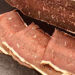 Ingredienten: varkensvlees, water, aardappelzetmeel, dextrose, stabilisator: (E 451 trifosfaten, E 450 difosfaten, E 452 polyfosfaten), specerijen, aroma, antioxidant: (E 300 ascorbinezuur, E 301 natriumascorbaat), rook, rookaroma, zout, conserveermiddel: natriumnitriet, maltodextrine, kruiden en specerijen (paprikapoeder, MOSTERDZAAD, witte peper, zwarte peper, koriander, knoflookpoeder, foelie), zetmeel (aardappel), zout, gistextract, gejodeerd zout, uipoeder, gebrande suikerstroop, suiker, rundvleesextract, tomaatpoeder, natuurlijk aroma, lavaswortel, keukenzout, kleurstof: E 120 karmijn